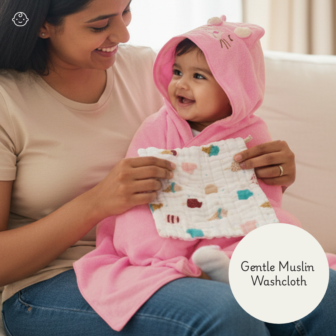 The Tiny Splash Baby Bath Hamper is a joyful 5-piece gift set for newborns, curated to make bath time both soothing and special. It includes: